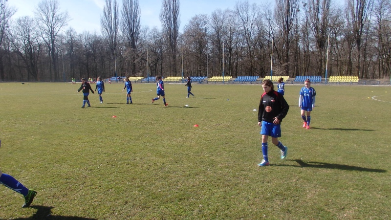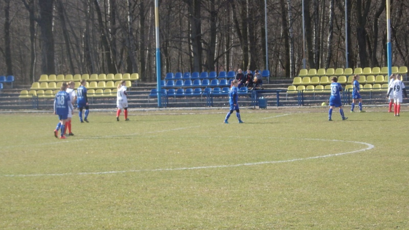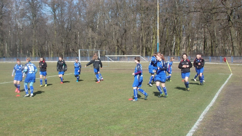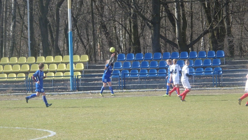 Mecz pomiędzy liderem i wiceliderem tabeli nie był porywającym widowiskiem. Oba zespoły po długiej przerwie zimowej nie stworzyły za wiele sytuacji podbramkowych. Gra toczyła się przede wszystkim w środkowej części boiska, więcej było w tym meczu walki i zaangażowania zawodniczek obu zespołów niż czystej zespołowej gry. Wszystkie bramki zdobyte w tym meczu przez gospodynie wynikały raczej z prostych własnych błędów zawodniczek Pogoni niż z ładnych przeprowadzonych akcji. Pierwszy groźny strzał w tym meczu oddała zawodniczka Pogoni, Martyna Kowalska, ale bez problemów obroniony przez bramkarkę Kolejarza. W 13 minucie meczu w niegroźnej sytuacji Natalia Okoń sfaulowała w polu karnym piłkarkę gospodyń i sędzia meczu podyktował rzut karny. Do wykonania "jedenastki" podeszła Katarzyna Borowiec po której strzale bramkarka Pogoni Izabela Krzesińska podbiła piłkę w górę, ale niestety dla drużyny Pogoni piłka wturlała się do bramki. Druga bramka dla Kolejarza padła w 32 minucie po nieporozumieniu zawodniczek Pogoni Natalii Okoń i Michaliny Sutowicz, które nie potrafiły wybić piłki, którą przejęła przed polem karnym Katarzyna Borowiec i w sytuacji sam na sam z Izabelą Krzesińską zdobyła drugą bramkę w tym meczu. Do przerwy nic więcej nie działo się pod obiema bramkami.