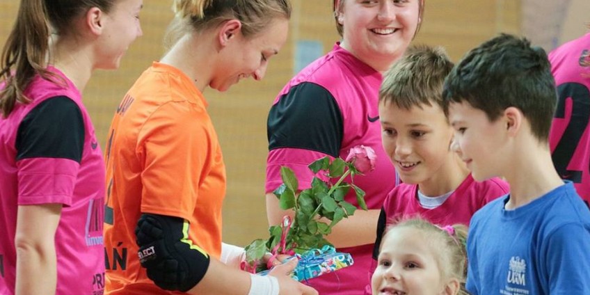 Przed niedzielnym meczem Ekstraligi futsalu pomiędzy AZS UAM Poznań - AZS UW Warszawa (4:0) odbyła się mała uroczystość. Róże w barwach futsalistek UAM oraz słodki upominek otrzymała